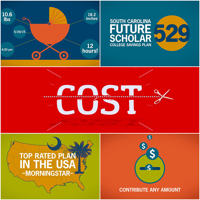 South Carolina offers a savings program for children. I wanted to inform and entertain to make a potentially dry topic interesting. It went through a number of explorations before achieving the final look.